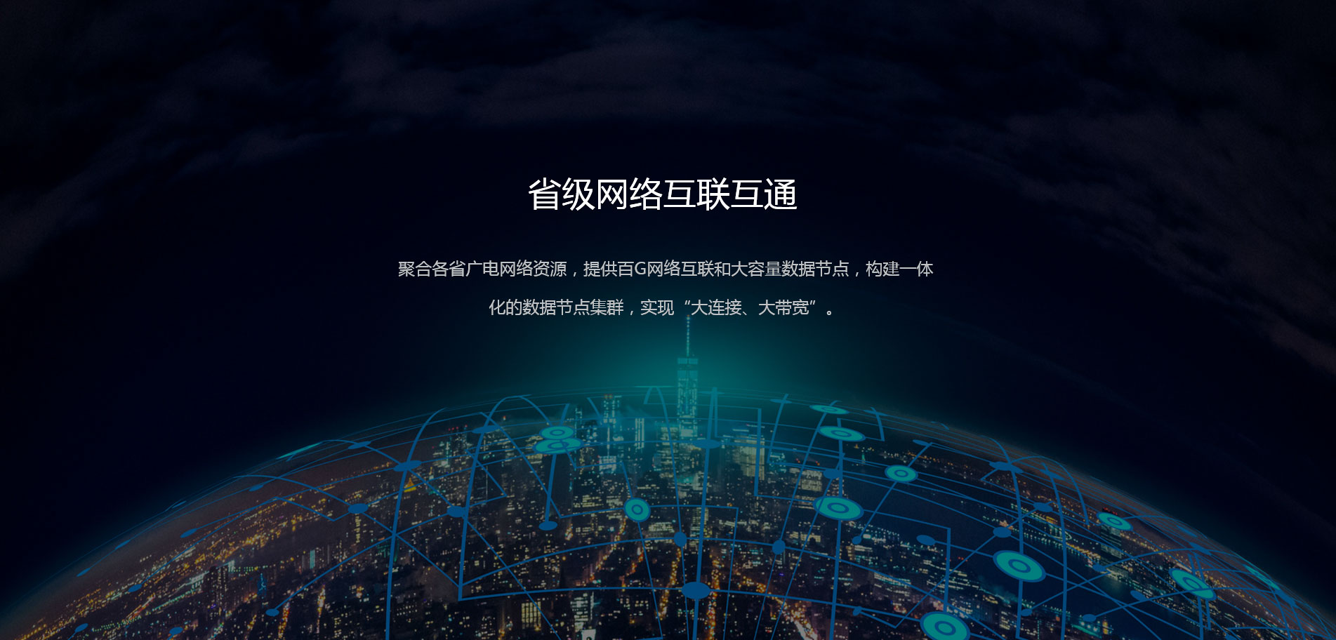 聚合各省廣電網(wǎng)絡(luò)資源,提供百G網(wǎng)絡(luò)互聯(lián),構(gòu)建全國(guó)性省際網(wǎng)絡(luò)互聯(lián)互通與數(shù)據(jù)節(jié)點(diǎn)等基礎(chǔ)服務(wù);基于大連接與大數(shù)據(jù)融合的業(yè)務(wù)模式,提供廣電特色的數(shù)據(jù)技術(shù)服務(wù)。